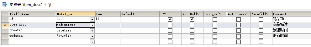 说明: 将item_desc中的表字段 数据类型扩大mediumText .