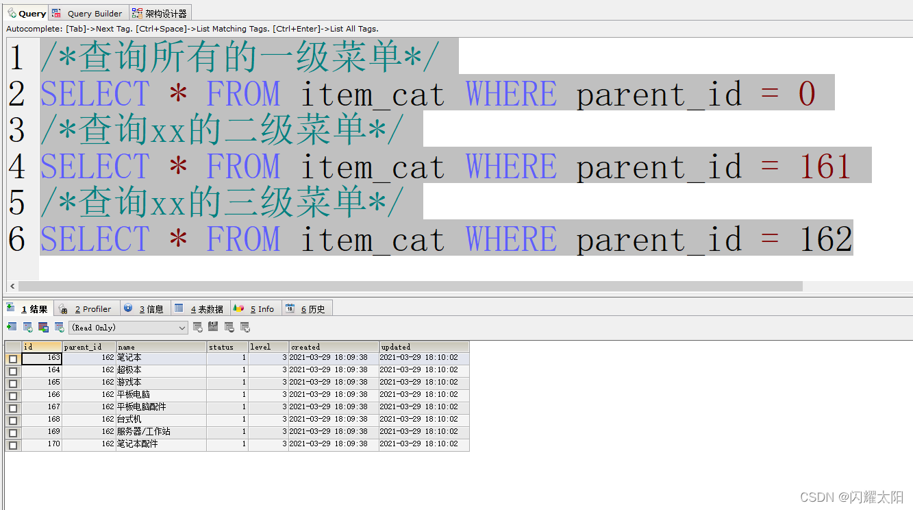 通过parent_id 实现父子关系的查询