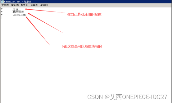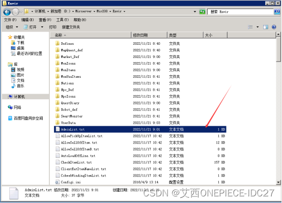 计算机D:\Mirserver\Mir200\Envir打开AdminList.txt文件