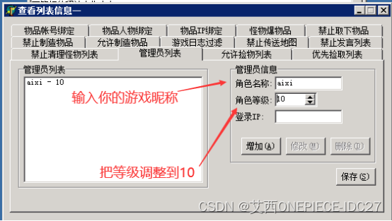 调整人物的权限等级,可以讲普通人升为GM权限