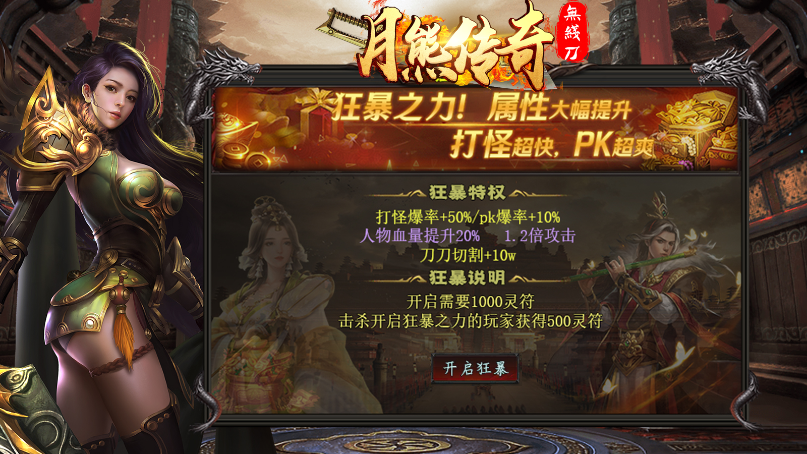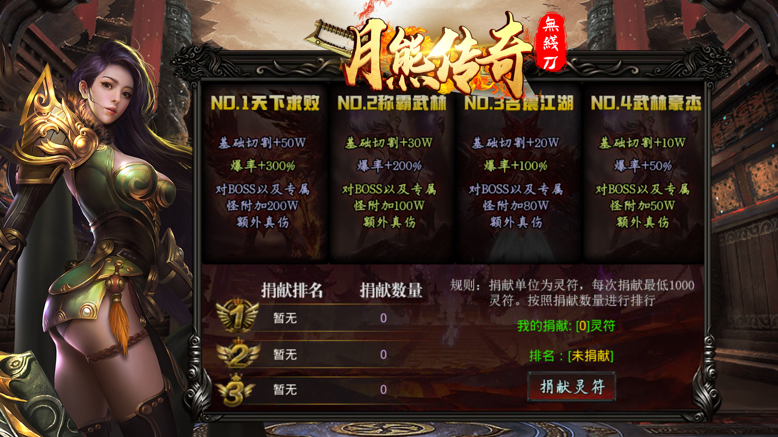 1.服务器名:月熊传奇无限刀 2.网站地址:http://www.yxwlyx.top:8518 3.苹果下载地址:https://www.567fenfa.cn/f2urse 4.安卓下载地址:https://www.567fenfa.cn/f2urse 5.PC(电脑)下载地址:https://wwe.lanzouf.com/ikbvt00jrbqj 游戏版本:单职业、1.95 一:游戏介绍 月熊传奇无限刀,是由知名游戏公司月熊网络倾情打造的一款超高人气热血传奇。 这款游戏由3D真实特效打造,融合丰富多样的玩法剧情,炫酷超燃的技能特效, 更有超高爆率神装,让你轻松杀怪,装备爆满屏! 送炫酷华丽时装,各大神器!轻松秒杀各种地图BOSS,无限攻速神器! 让你体验丰富玩法,亮出炫酷技能,领取超多任务, 开启最精彩的传奇人生! 二:玩法特色 送自动挂机,时装,各种炫酷神器! 各大地图均刷BOSS,散人也可无压力单挑BOSS,告别暗坑! 所有装备一切靠打,散人出神器,爆率全开,花钱都不好使! 上线即获得新人豪礼,挂机也能打充值,装备秒回收! 剧情饱满,独特玩家排行榜,众多传奇大神一览无余! 三:游戏攻略 1:等级提升 (1)安全区可以免费泡到100级 ! (2)后期打等级丹提升,本F满级320 (3)所有材料价值比较高 小怪爆一切 材料 装备 ! (4)装备回收可获得大量游戏货币! 2:战斗力提升 (1)本F无回馈地图,转生地图,所有地图达到战力就可以直接下 (2)前期可以下新手地图累积战力,推荐前期先打元宝做斗笠,斗笠附带高额的刀刀切割 (3)斗笠成型后优先做勋章(附带刀刀切割倍数)和攻速意志(附带超级攻速)这些前期都容易获得 (4)快速下图可以优先做盾牌。盾牌附带高额战力提升,是快速下图的最快方式 (5)本F时装通过时装碎片+货币打造,后期三套时装附带高额战力与传送功能 (6) 本F称号是附带几率切割,白怪与教主是不吃普通切割只能通过本身战力或者称号切割来打怪 (7) 称号碎片所有怪物都有几率获得,怪物级别越高爆率越高,教主必爆称号碎片与灵符 (8) 本F比较重要的材料(称号碎片,黄金熔炼石,神装锻造石,复古神器碎片) (9) 温馨提示:如果发现战力差点点就能下图,玩家可以通过装备强化来获得战力